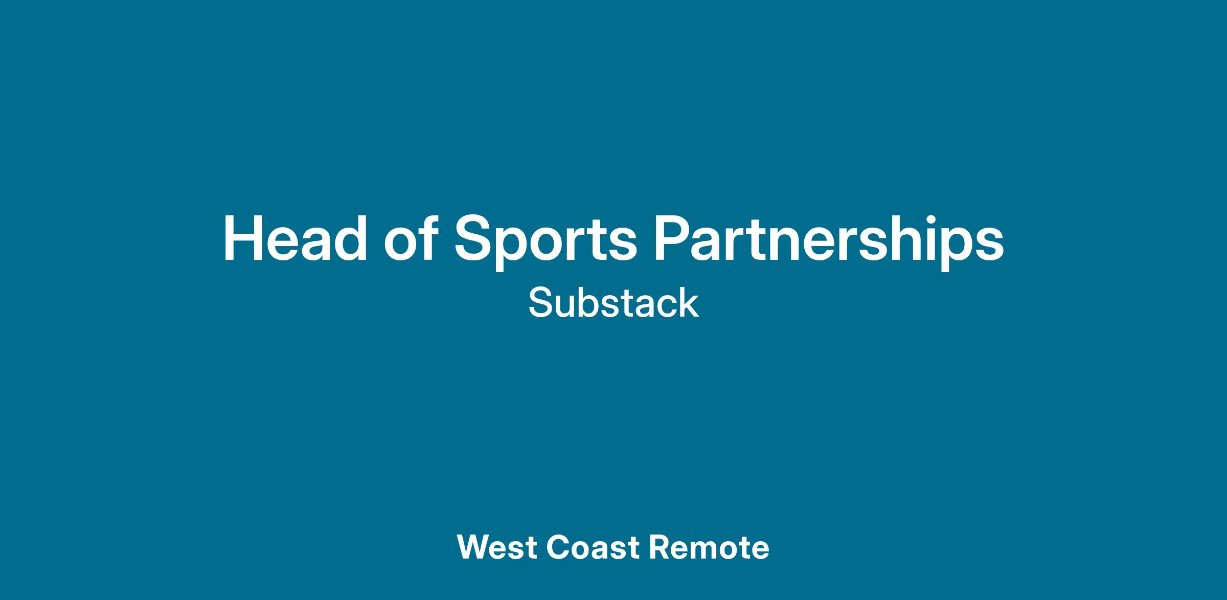 As the Head of Sports Partnerships, you will be responsible for creating a thriving sports category on Substack. Your job will be to bring sports industry leaders over to Substack, help them make money and create community and continue to expand the market. Success will mean sports news, community and cultural moments happen on Substack. In this role, you’ll be a leader on the Partnerships team, overseeing strategy, budget, external relationships and goal execution for your market.