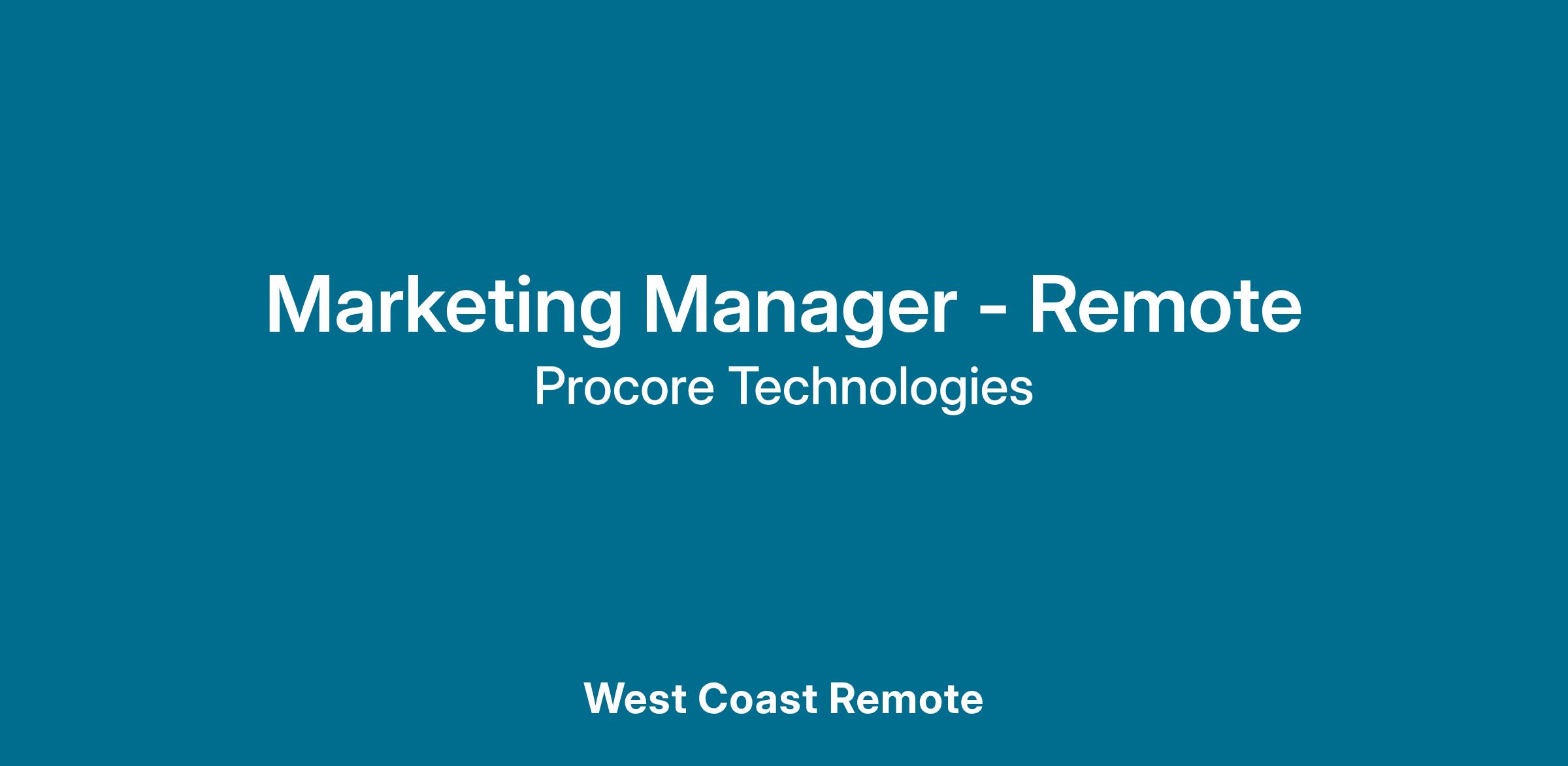View all Procore Technologies jobs in California - California jobs - Marketing Manager jobs in California Salary Search: Marketing Automation Manager salaries in California