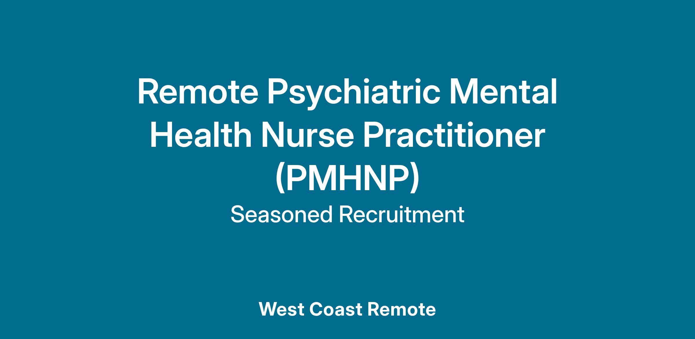 DescriptionAre you a passionate PMHNP looking to make a significant impact from the comfort of your home? Seasoned Recruitment is seeking a dedicated and compassionate Remote PMHNP to join our growing team. In this role, you'll have the opportunity to provide high-quality mental healthcare to diverse populations, utilizing your expertise to improve lives. We value autonomy, professional development, and a supportive work environment.