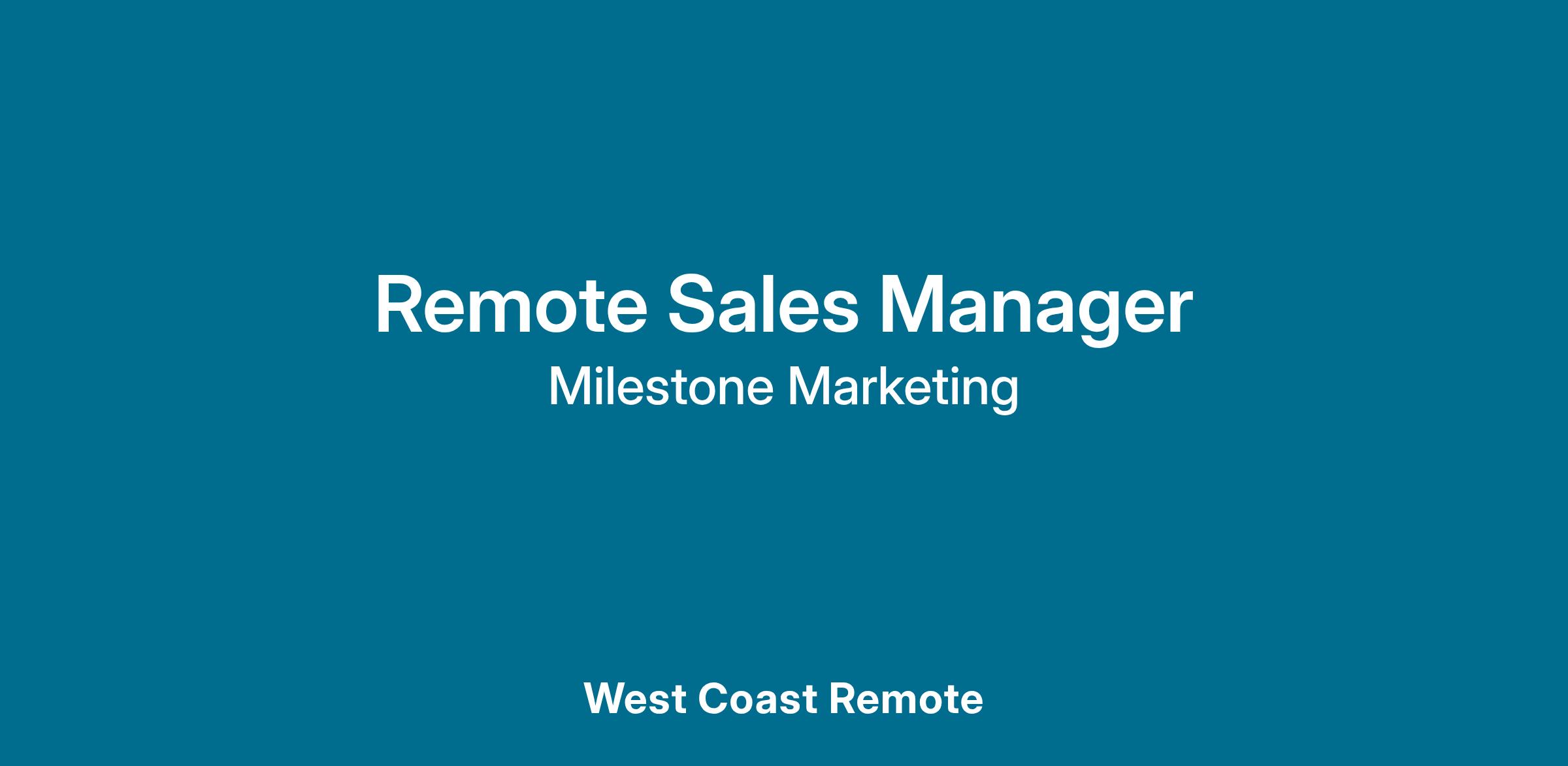 Join us in this exciting opportunity where you can make an impact through your sales expertise! Job Type: Full-time Remote Sales Manager jobs in Remote. CA focus.