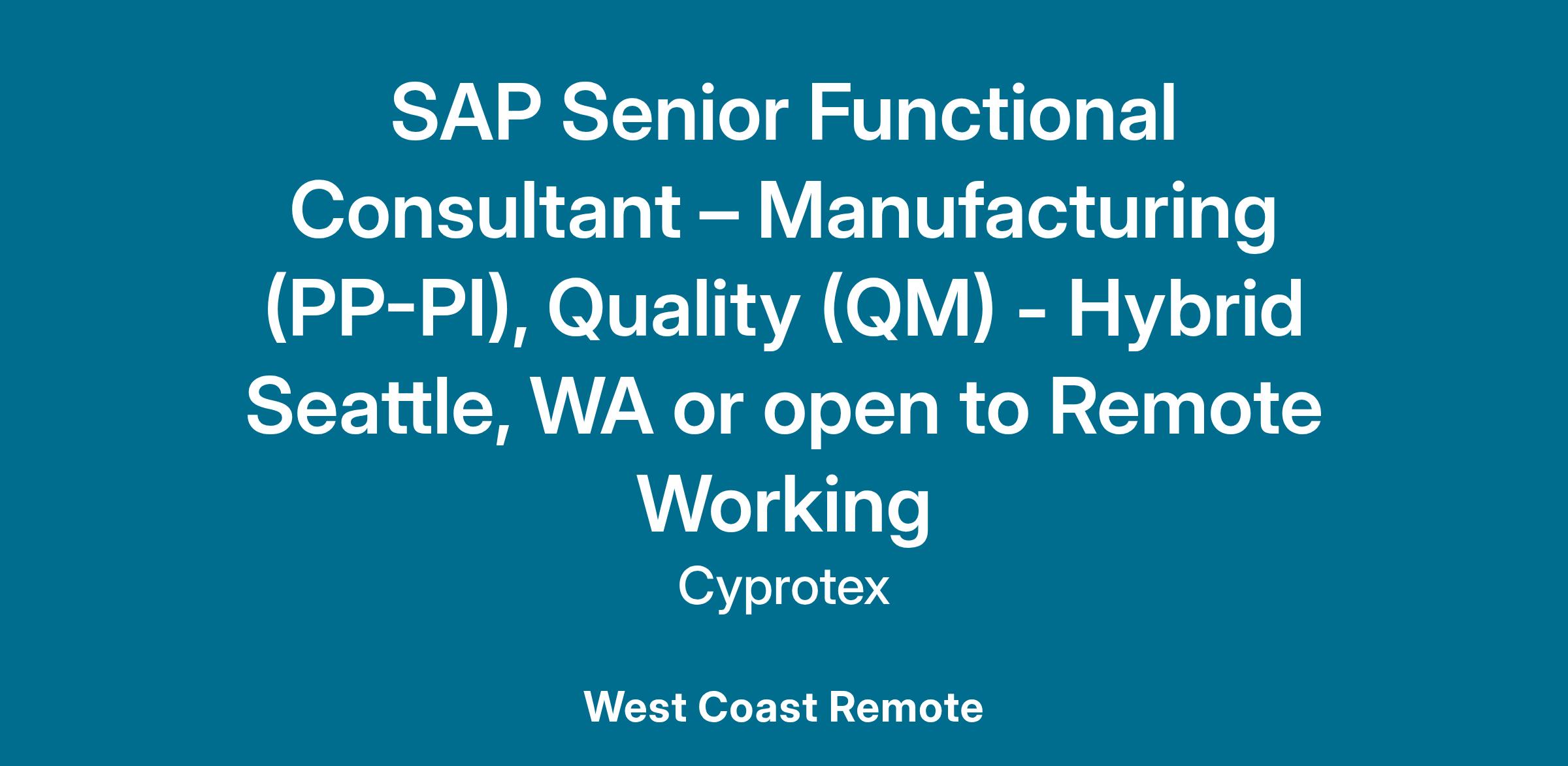 SAP Senior Functional Consultant – Manufacturing (PP-PI), Quality (QM) - Hybrid Seattle, WA or open to Remote Working